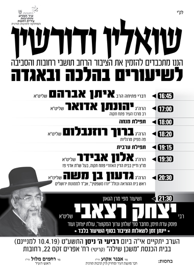 שואלין ודורשין לקראת חג פסח - רחובות ת"ו