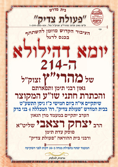 על פי הוראת מרן הגאון הרב יצחק רצאבי שליט"א וגדולי התורה והפוסקים, השימוש באינטרנט הינו לצורך בלבד, ובחיבור לאינטרנט כשר ומבוקר. כל חיבור אחר מהוה סכנה רוחנית וחינוכית.
