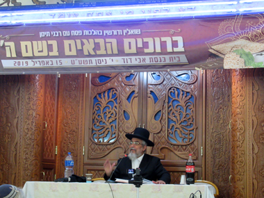שיעור תורה בהלכות פסח מפי מרן הגאון רבי יצחק רצאבי שליט"א - פוסק עדת תימן, שנמסר ביום שני בערב אור לי"א ניסן ה'תשע"ט, בבית הכנסת התימני רח' נגארה 3 – חולון, בראשות הרב גלעד רצון שליט"א. שאלות ותשובות לאחר השיעור. כולל תמונות.