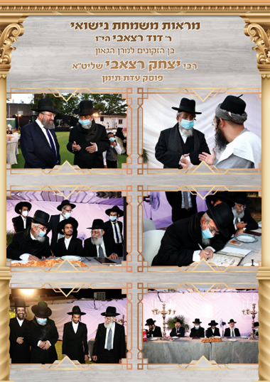 | מזכרת נצח! אלבום תמונות מרהיב מתוך גלריית התמונות של הצלם יעקב כהן, בשמחת הנישואין של ר' דוד רצאבי הי"ו בן זקונים למרן הגאון רבי יצחק רצאבי שליט"א - פוסק עדת תימן, אשר בגלל המצב נערכה לפי הכללים במקום פתוח, כשכולם עטויי מסכות ועם מספר מצומצם של מוזמנים. בסידור קידושין כובד מרן שליט"א, ובברכה אחריתא הגרי"ח בן דב ראש ישיבת "זכרון יעקב" בה למד החתן. | ||||||||