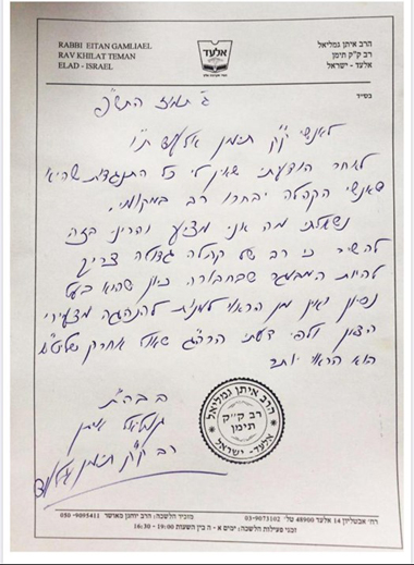 תמיכת מרן שליט"א במינוי הרה"ג שאול אחרק שליט"א כרבה הראשי התימני של העיר אלעד