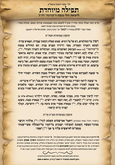 שו"ת בעניין התפילה המיוחדת לחולי ה"קורונה" |