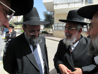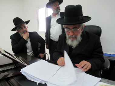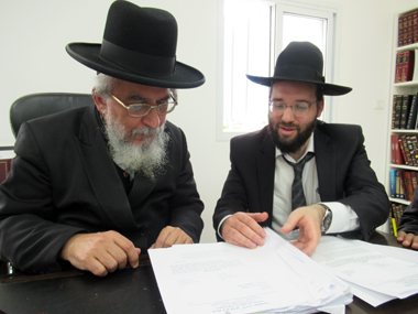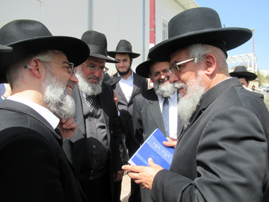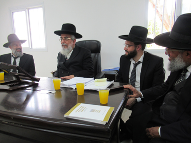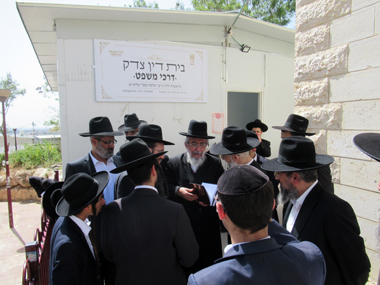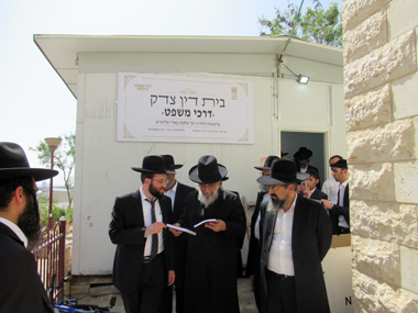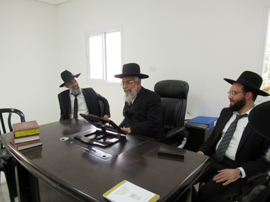 | מרן הגאון רבי יצחק רצאבי שליט"א - פוסק עדת תימן, בקביעת מזוזה (בברכה בהרהור בלב, מבלי להוציא בשפתיים, מחמת הספק) למשכן החדש של בית דין צדק ובית ההוראה "דרכי משפט", בראשות הרה"ג רבי שלמה בארי שליט"א - שכונת ברכפלד, מודיעין עילית | ||||||||