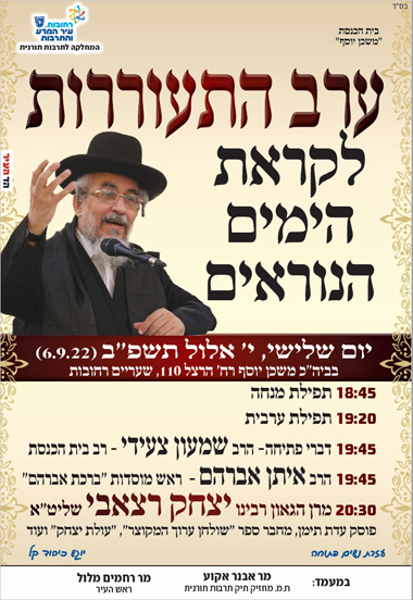 "ערב התעוררות" לקראת הימים הנוראים הבעל"ט - רחובות ת"ו |