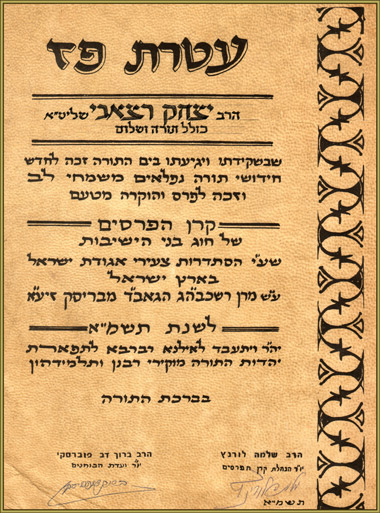 נציב החודש! אם רצונך שזכות לימוד התורה, המסורת והמנהגים, של אלפי לומדים באתר זה יעמדו לזכותך במשך חודש ימים, להצלחה לרפואה או לע"נ, אנא פנה לטל': 0504140741, ובחר את החודש הרצוי עבורך. "נציב החודש" יקבל באנר מפואר בו יופיעו שמו להצלחתו, או שם קרוביו ז"ל בצירוף נר נשמה דולק, וכן בתעודת הוקרה ובברכה אישית ממרן הגאון הרב יצחק רצאבי שליט"א.