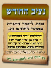 נציב החודש! אם רצונך שזכות לימוד התורה, המסורת והמנהגים, של אלפי לומדים באתר זה יעמדו לזכותך במשך חודש ימים, להצלחה לרפואה או לע"נ, אנא פנה לטל': 0504140741, ובחר את החודש הרצוי עבורך. "נציב החודש" יקבל באנר מפואר בו יופיעו שמו להצלחתו, או שם קרוביו ז"ל בצירוף נר נשמה דולק, וכן בתעודת הוקרה ובברכה אישית ממרן הגאון הרב יצחק רצאבי שליט"א.