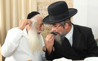 מרן שליט"א מנשק את ידו של המנוח זצ"ל