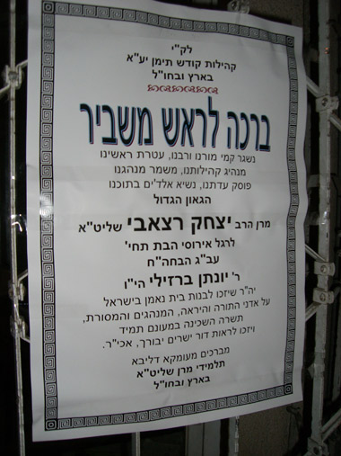 | קהילות ומוסדות ברחבי הארץ שולחים את ברכותיהם בכתב ובע"פ למרן הגאון הרב יצחק רצאבי שליט"א פוסק עדת תימן לרגל אירוסי הבת שתחי' עם הבחה"ח יהונתן ברזילי יצ"ו. מצורפות תמונות מקיר בית המדרש שם נתלו בימים האחרונים ברכות רבות למרן שליט"א... | ||||||||