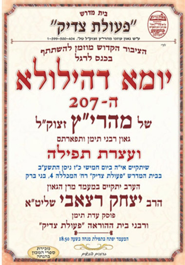 על פי הוראת מרן הגאון הרב יצחק רצאבי שליט"א וגדולי התורה והפוסקים, השימוש באינטרנט הינו לצורך בלבד, ובחיבור לאינטרנט כשר ומבוקר. כל חיבור אחר מהוה סכנה רוחנית וחינוכית.