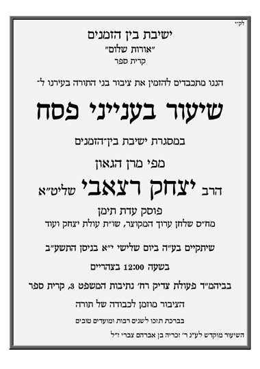 שיעור עיוני מפי מרן הגאון הרב יצחק רצאבי שליט"א - קרית ספר