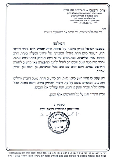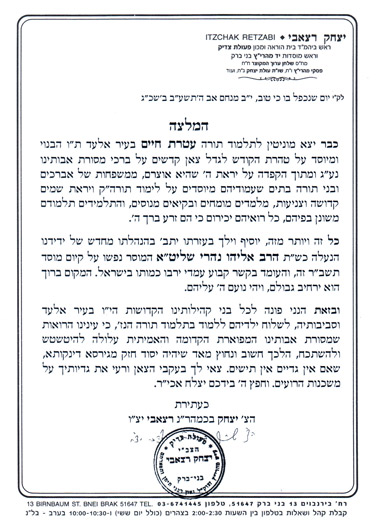 נציב החודש! אם רצונך שזכות לימוד התורה, המסורת והמנהגים, של אלפי לומדים באתר זה יעמדו לזכותך במשך חודש ימים, להצלחה לרפואה או לע"נ, אנא פנה לטל': 0504140741, ובחר את החודש הרצוי עבורך. "נציב החודש" יקבל באנר מפואר בו יופיעו שמו להצלחתו, או שם קרוביו ז"ל בצירוף נר נשמה דולק, וכן בתעודת הוקרה ובברכה אישית ממרן הגאון הרב יצחק רצאבי שליט"א.