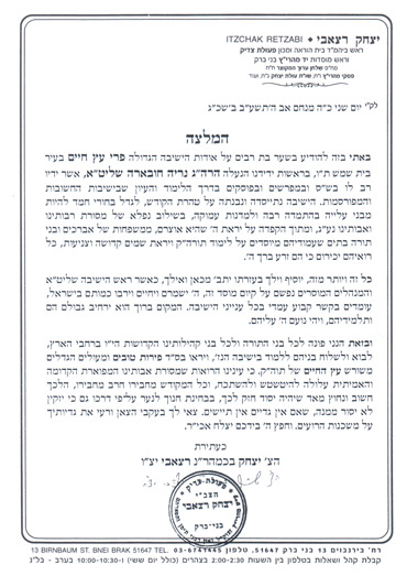 לדברי נשיא הישיבה מרן הגאון רבי יצחק רצאבי שליט"א - לחץ כאן