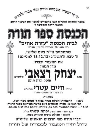 על פי הוראת מרן הגאון הרב יצחק רצאבי שליט"א וגדולי התורה והפוסקים, השימוש באינטרנט הינו לצורך בלבד, ובחיבור לאינטרנט כשר ומבוקר. כל חיבור אחר מהוה סכנה רוחנית וחינוכית.