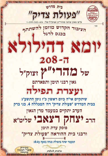 הילולת מהרי"ץ זיע"א (ה-208) - בני ברק