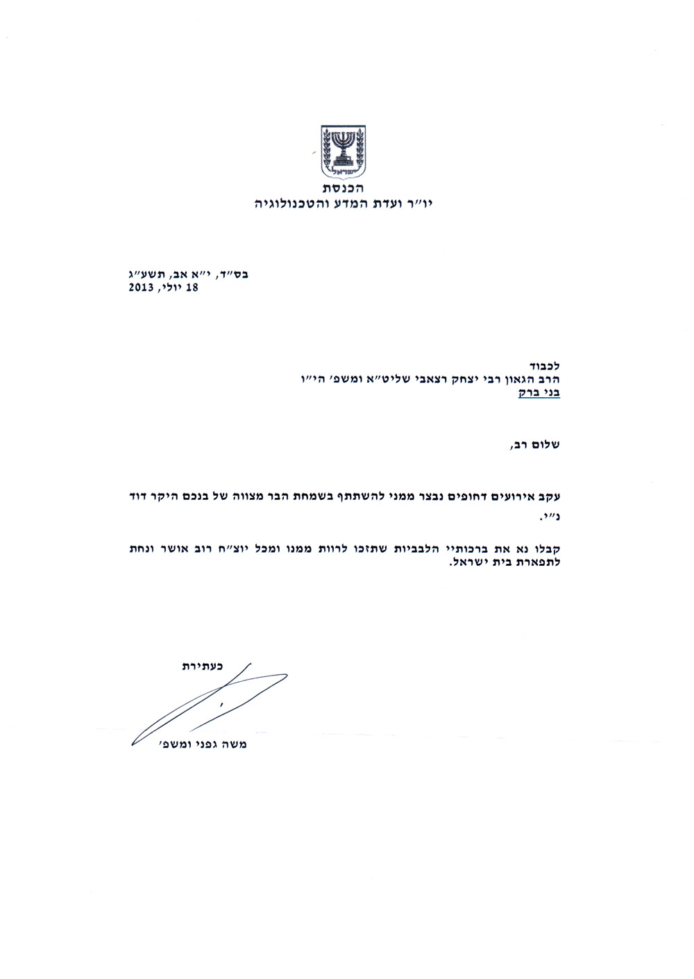 - מכתב למרן שליט"א, כ"ו שבט ה'תשע''ד