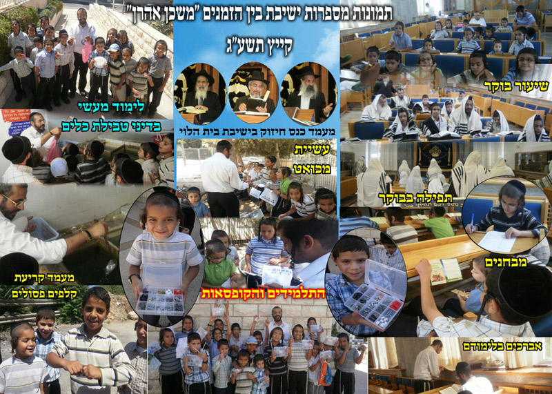 במסגרת פעילות ארגון "אור ההלכה" בישיבת בין הזמנים "משכן אהרן" בשכונת בית וגן ירושלים, הילדים למדו ונבחנו על הלכות מתוך ספר שלחן ערוך המקוצר, לימוד מעשי בדיני טבילת כלים, שינון טעמי אמ"ת, מעמד קריעת קלפים פסולים, עשיית מכואט, המשתתפים קיבלו פרס קופסת אחסון ובכל יום מקבלים שקית עם מספר ברגים, מסמרים... כדי שיוכלו לעזור לאבא לבנות סוכה...