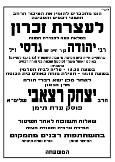 על פי הוראת מרן הגאון הרב יצחק רצאבי שליט"א וגדולי התורה והפוסקים, השימוש באינטרנט הינו לצורך בלבד, ובחיבור לאינטרנט כשר ומבוקר. כל חיבור אחר מהוה סכנה רוחנית וחינוכית.