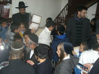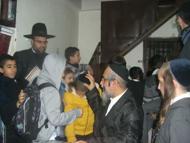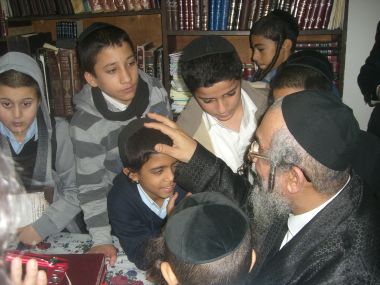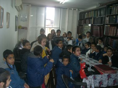 עשרות מתלמידי תלמוד תורה "פיתוחי חותם" בצירוף הרבנים המלמדים שיחי', בעת ביקור בביתו של מרן הגאון הרב יצחק רצאבי שליט"א, אשר בחן את הילדים היקרים שיחי' על המסכתות שאותם הם לומדים, והתפעל מאד מהידע הרב שלהם, וכן מהמדות והדרך ארץ הניכרים על פניהם. מצ"ב וידיאו ותמונות. (ח' טבת ה'תשע"ד).