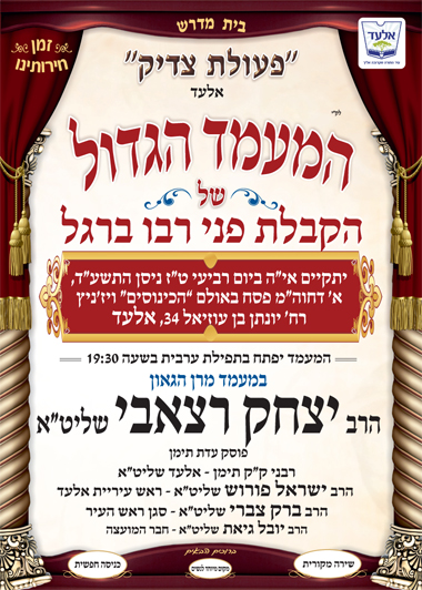 נציב החודש! אם רצונך שזכות לימוד התורה, המסורת והמנהגים, של אלפי לומדים באתר זה יעמדו לזכותך במשך חודש ימים, להצלחה לרפואה או לע"נ, אנא פנה לטל': 0504140741, ובחר את החודש הרצוי עבורך. "נציב החודש" יקבל באנר מפואר בו יופיעו שמו להצלחתו, או שם קרוביו ז"ל בצירוף נר נשמה דולק, וכן בתעודת הוקרה ובברכה אישית ממרן הגאון הרב יצחק רצאבי שליט"א. |