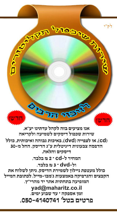 חדש! שירות שיכפול תקליטורים ודפוס דיגיטלי לזיכוי הרבים