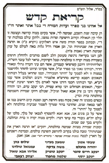קריאת קודש בעניין "היתר מכירה" בשביעית