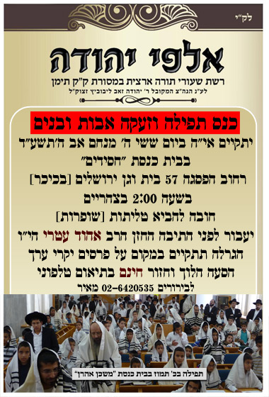 על פי הוראת מרן הגאון הרב יצחק רצאבי שליט"א וגדולי התורה והפוסקים, השימוש באינטרנט הינו לצורך בלבד, ובחיבור לאינטרנט כשר ומבוקר. כל חיבור אחר מהוה סכנה רוחנית וחינוכית.