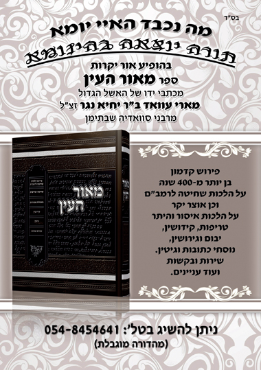 נציב החודש! אם רצונך שזכות לימוד התורה, המסורת והמנהגים, של אלפי לומדים באתר זה יעמדו לזכותך במשך חודש ימים, להצלחה לרפואה או לע"נ, אנא פנה לטל': 0504140741, ובחר את החודש הרצוי עבורך. "נציב החודש" יקבל באנר מפואר בו יופיעו שמו להצלחתו, או שם קרוביו ז"ל בצירוף נר נשמה דולק, וכן בתעודת הוקרה ובברכה אישית ממרן הגאון הרב יצחק רצאבי שליט"א.