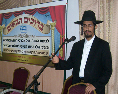 | דרשת מרן הגאון רבי יצחק רצאבי שליט"א - פוסק עדת תימן ונשיא רשת הכוללים "נחלת מהרי"ץ", שנמסרה במסגרת הילולת מהרי"ץ ה-210 שנערכה לאברכי הכוללים באולמי ברסלב - בני ברק, אור לכ"ח בניסן ה'תשע"ה. יישר כח לראש המוסדות הרב דוד טוב שליט"א על פועלו הרב להרמת קרן עדתינו וקרן תורת מהרי"ץ זיע"א ומרן שליט"א. |