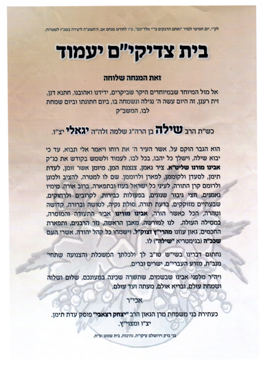 נציב החודש! אם רצונך שזכות לימוד התורה, המסורת והמנהגים, של אלפי לומדים באתר זה יעמדו לזכותך במשך חודש ימים, להצלחה לרפואה או לע"נ, אנא פנה לטל': 0504140741, ובחר את החודש הרצוי עבורך. "נציב החודש" יקבל באנר מפואר בו יופיעו שמו להצלחתו, או שם קרוביו ז"ל בצירוף נר נשמה דולק, וכן בתעודת הוקרה ובברכה אישית ממרן הגאון הרב יצחק רצאבי שליט"א. |