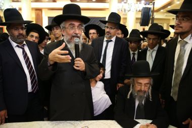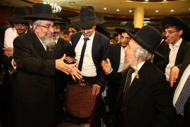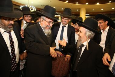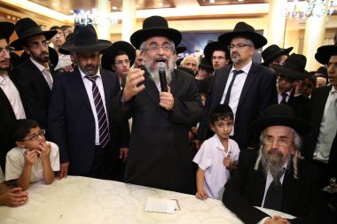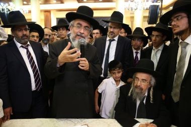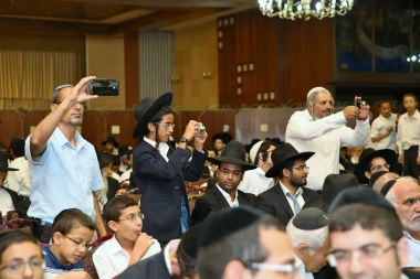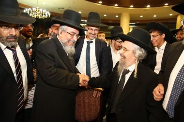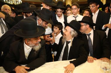 "מורנו ורבינו הגאון הגדול מהרי"ץ של זמנינו... כל הדברי תורה שהוא אומר, זה שלו, לא ליקוטים..." כך התבטא הגאון הגדול רבי שלמה קורח שליט"א על מרן הגאון הגדול רבי יצחק רצאבי שליט"א בעת השתתפות מרן שליט"א בשמחת בית השאובה שנערכה ע"י קהילת חניכי הישיבות באולמי ארמונות חן - בני ברק, ביום חמישי ד' דחול המועד סוכות ה'תשע"ו. צפו בתמונות ובקטע וידיאו קצר מהאירוע! הצילום והתמונות באדיבות יעקב כהן