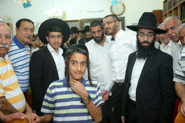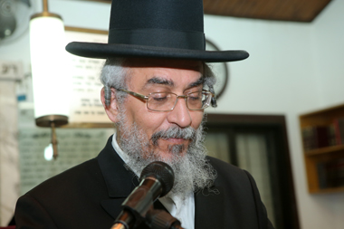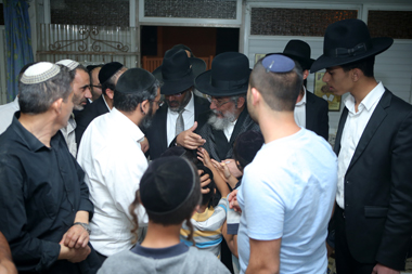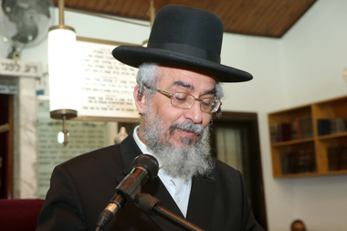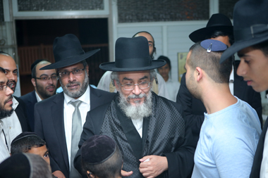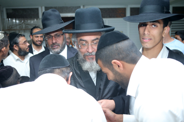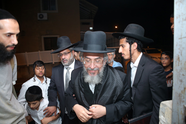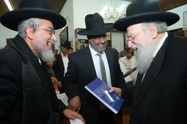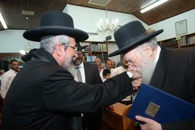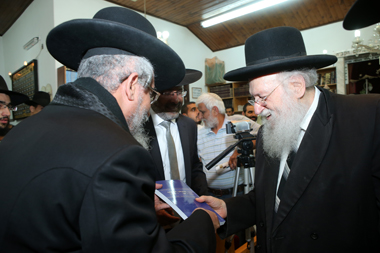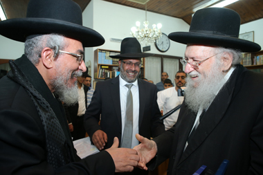 הגאון הגדול הרב שמחה הכהן קוק שליט"א - רבה של העיר רחובות מנשק את ידו של מרן הגאון רבי יצחק רצאבי שליט"א - פוסק עדת תימן