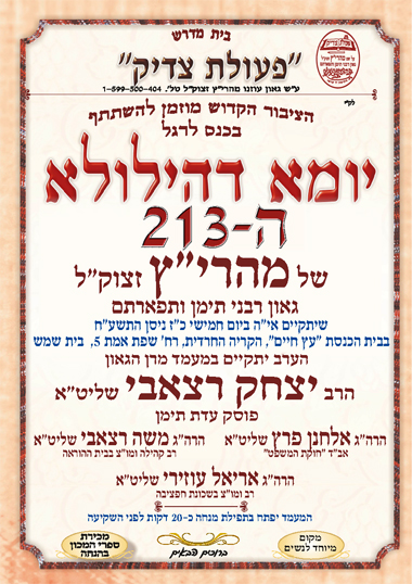 הילולת מהרי"ץ ה-213 - ה'תשע"ח - בית שמש 90 דק' |