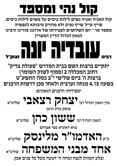 שלושים לפטירת הרב הגאון עובדיה יונה זצ"ל