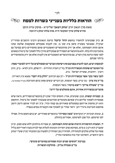הוראות כלליות בענייני כשרות לפסח - לבני ק"ק תימן |